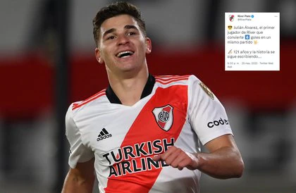 El partido por el cierre de la zona de grupos de la Copa Libertadores terminó con los hinchas Millonarios sin voz. Es que el equipo de Núñez logró imponerse ante el Alianza Lima por 8 – 1, dejando el encuentro en la historia del club. Desde las redes de River destacaron al mismo tiempo que Julián Álvarez es “el primer jugador de River que convierte seis goles en un mismo partido. 121 años y la historia se sigue escribiendo...”.