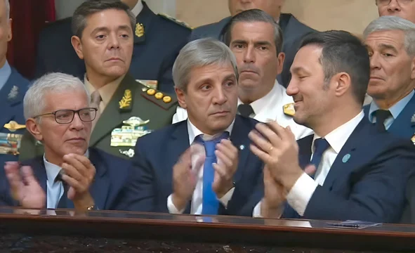 Mientras Milei pronunciaba esta frase, las cámaras captaron la reacción del ministro de Economía, Luis Caputo, quien se mostró sorprendido, en contraste con otros funcionarios que lo aplaudían.