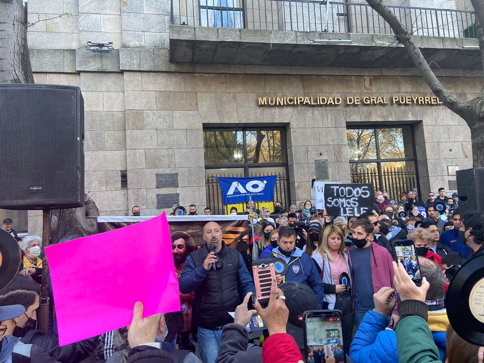 Aproximadamente 800 personas asistieron a la convocatoria, frente al edificio de la municipalidad por la indignación que provoca el asesinato de Leandro Gatti, el DJ de Mr. Jones, ocurrido en la mañana del domingo en Playa Grande. El joven de 32 años fue ultimado de un tiro de un arma calibre 22 que impactó en su corazón.