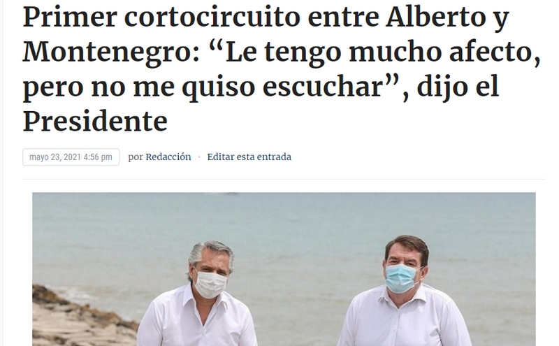 El presidente de la Nación, Alberto Fernández, se mostró decepcionado y lo expresó públicamente con el intendente Guillermo Montenegro.
