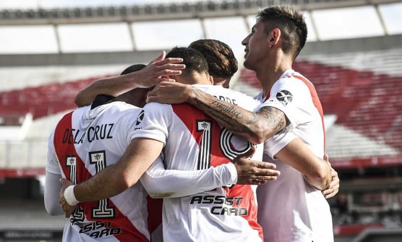 Gonzalo Montiel, de penal, Rafael Santos Borré, José Paradela y Matías Suárez, en el día de su vuelta, que justo coincidió con su cumpleaños número 33, convirtieron los goles de la victoria, mientras que Malcom Braida había anotado el empate transitorio.