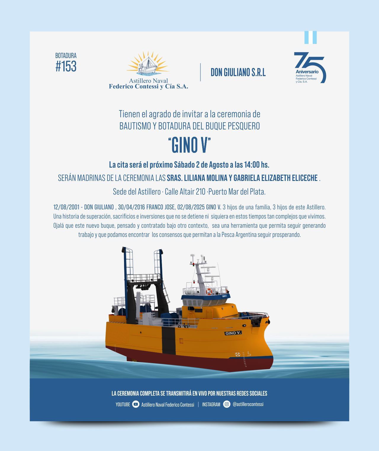 El buque “GINO V” es un buque de pesca marítima costera, especialmente diseñado para