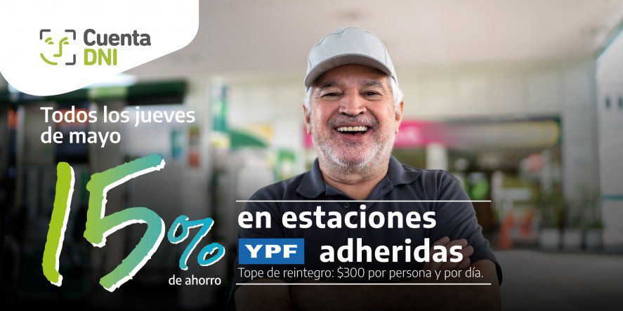 Según informó la entidad financiera, hoy habrá un 15% de descuento en estaciones de servicio YPF. La promoción aplicará para transacciones realizadas a través de Cuenta DNI dentro de los comercios adheridos, que pueden consultarse en la página de la entidad financiera. El tope de reintegro será de $300 por persona y por día.