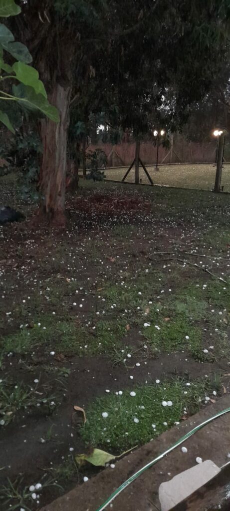 El tamaño de las mismas en algunos casos superó los 5 centímetros de diámetro y así estaba previsto en las páginas del clima, que anunciaron el fenómeno que continuó con una fuerte descarga eléctrica con una lluvia torrencial. El pico del meteoro se extendió por espacio de media hora aproximadamente. El daño sobre los cultivos de quintas puede haber sido de consideración, como en los autos que no contaban con el reparo adecuado. Se supo de viviendas que sufrieron rotura del techo, inúndánde las mismas. La evaluación no es total sino parcial aunque si fue de notoria consideración los impactos causados.