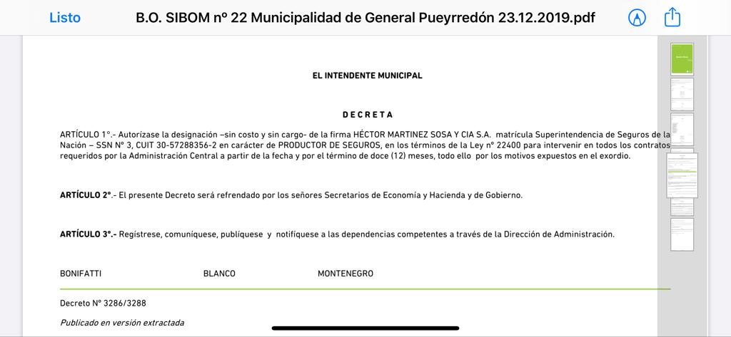 La incorporación de Héctor Martínez Sosa y Cía SA fue una especie de carta blanca a través de un decreto del intendente Guillermo Montenegro, para intervenir en todos los contratos requeridos por la Administración Central – sin costos y sin cargo – en carácter de PRODUCTOR DE SEGUROS en la Municipalidad de General Pueyrredon. La relación entre el entonces presidente de la Nación Alberto Fernández y Guillermo Montenegro, habían mantenido una intensa previa en años anteriores cuando ejercían y compartían el mismo estudio de abogados en CABA.