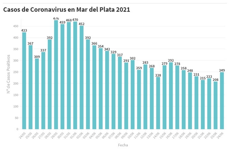 En el último informe del SISA, se confirmaron 249 nuevos pacientes en tratamiento por Covid-19, de los cuales 39 corresponden a casos definidos por criterio clínico epidemiológico y 210 a estudios laboratoriales realizados desde el 11 al 23 de junio.