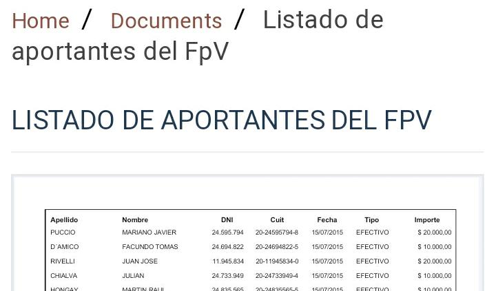 Sin embargo, vaya sorpresa que se habrán llevado desde el kirchnerismo cuando se enteraron que Chialva aparece en una lista de aportantes a la campaña del Frente Para la Victoria en 2015. Más precisamente, el ahora funcionario procesado aportó unos 10.000 pesos el 15 de julio de aquel año. Una cifra que hoy no dice mucho, pero que por entonces era más que importante.