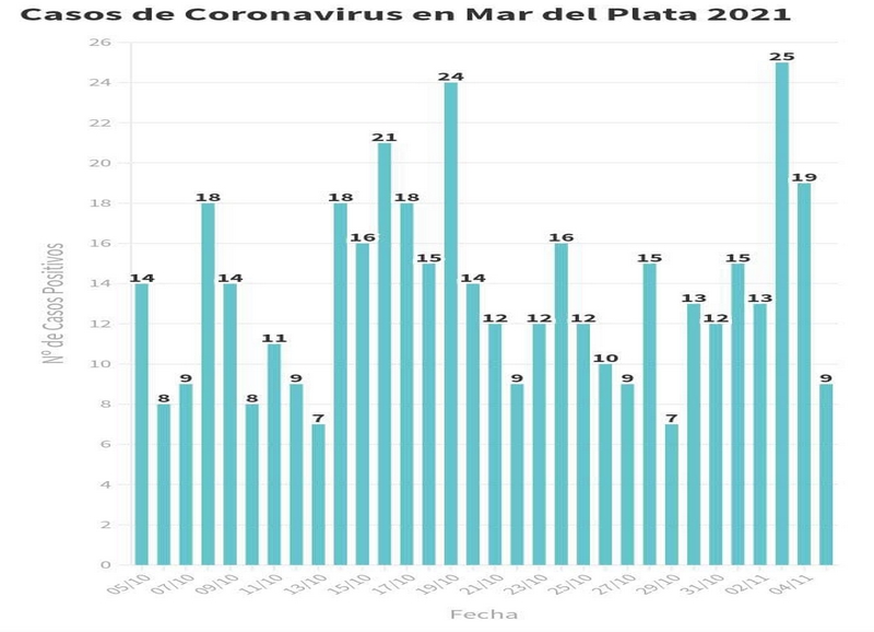 En el último informe del SISA reportado hoy se confirmaron 9 nuevos pacientes en tratamiento por Covid-19 en General Pueyrredon, que corresponden a casos definidos por estudios laboratoriales realizados desde el 31 de octubre al 4 de noviembre.