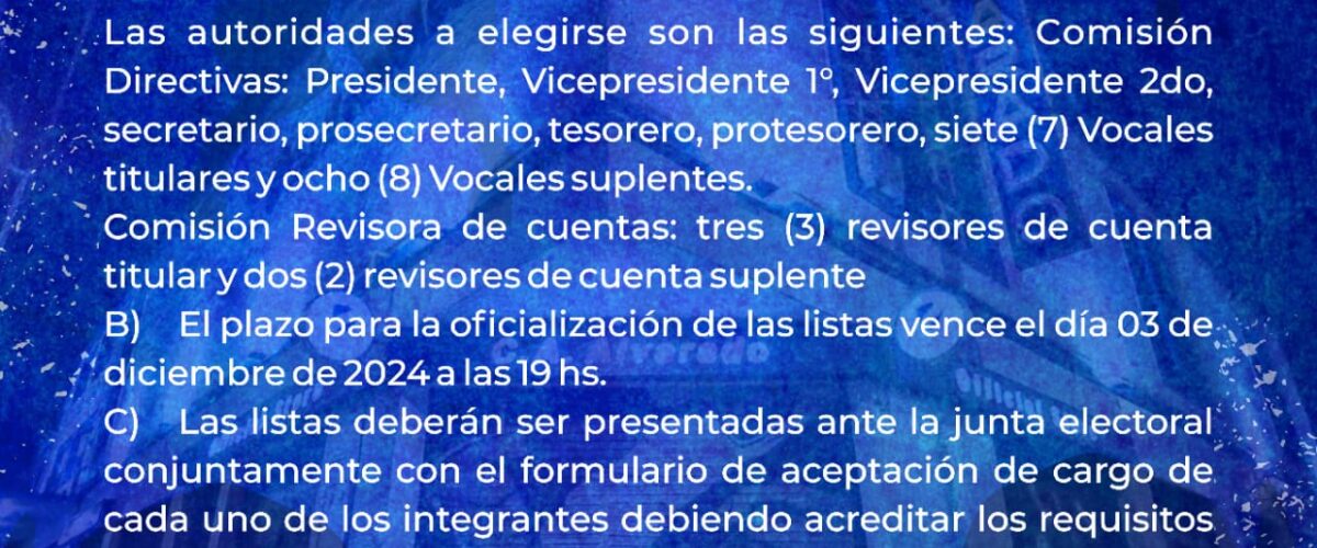 La Asamblea estaba prevista para el 12 de dicho mes y evidentemente ahora la Comisión Directiva del club tendrá que reunirse de inmediato para establecer los pasos a seguir, ya que según el estatuto de la institución, se verán obligados. Continúe en sus cargo , y acaso, ya con la pretemporada del plantel profesional de fútbol encima (enero 2025) hacer un tercer llamado a elecciones .