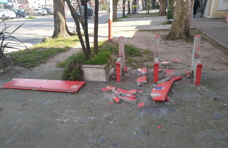 Autores no identificados destrozaron un banco rojo -que simboliza de concientización y lucha contra la violencia de género-, ubicado en avenida Libertad 4751.