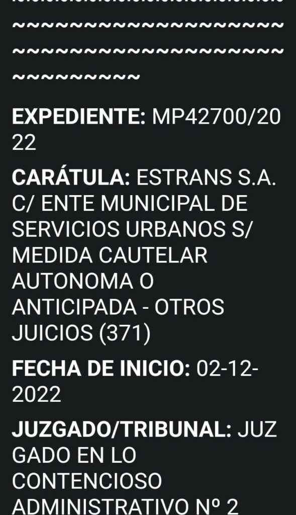 Además, la resolución se dicta, con carácter urgente y precautorio, para no desnaturalizar una posible presentación de Estrans S.A. en el proceso licitatorio; máxime que el llamado se hubo de realizar con fecha 18 de noviembre de 2022 y la apertura de las ofertas estaba prevista para el día 27 de diciembre del año en curso.