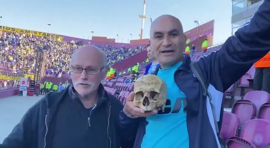 La historia, por insólita que parezca, tuvo su momento de tensión cuando el entrevistador le preguntó cómo había pasado los controles fronterizos con un cráneo humano. Sin titubear, el joven respondió: «Lo pasé con fe, con el amor de Racing. Él entra solo». La frase, cargada de humor y convicción, desató risas nerviosas y dejó una certeza: en nuestro país y particularmente en la hinchada de la Academia, la pasión futbolera no tiene límites.