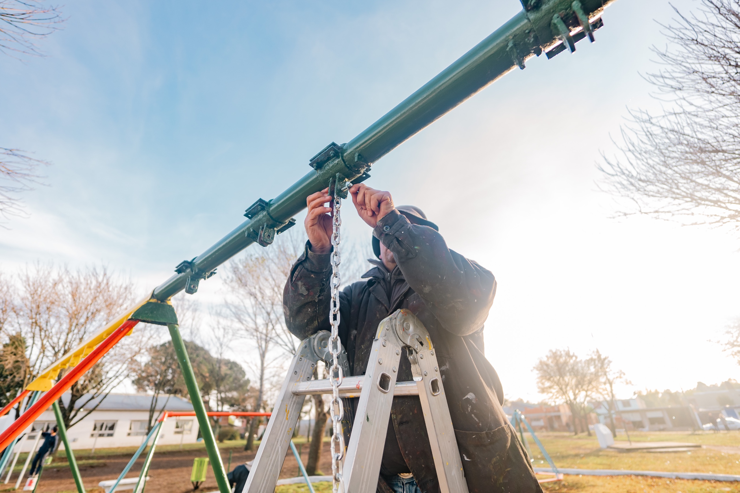 Respecto a los juegos infantiles, se repararon 55 estructuras, se fabricaron y colocaron 4 nuevos pórticos de hamacas y se pintaron 108 juegos. Finalmente, se refuncionalizaron 8 mástiles con las drizas correspondientes.
