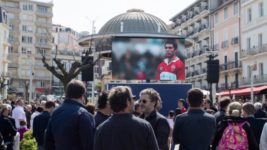 La ceremonia, con una misa en la iglesia Sainte Eugenie de Biarritz, se transmitió por internet, y además se colocaron pantallas gigantes en el centro de la ciudad, para despedir al argentino, quien jugó tres años en el club de allí.