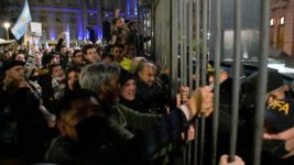 Si bien se trató de una manifestación que transcurrió sin incidentes, cerca de las 19 se vivieron momentos de tensión cuando un grupo de personas que se encontraban en la Plaza de Mayo comenzaron a sacudir las rejas del frente de la Casa Rosada.