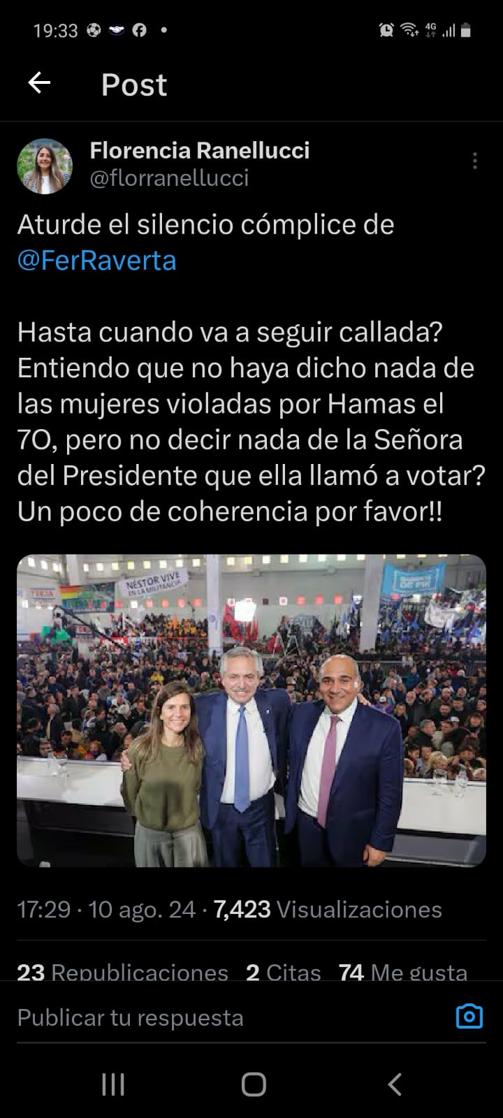 La concejal del PRO Florencia Ranelucci, se ha percatado de lo que sostienen otros peronistas que en distintas tribus rechazan a Raverta, quien no ha dudado en dejar a los compañeros de Unidades Básicas de un trabajo militante con otro perfil, con menos Cámpora y más Perón y Evita.