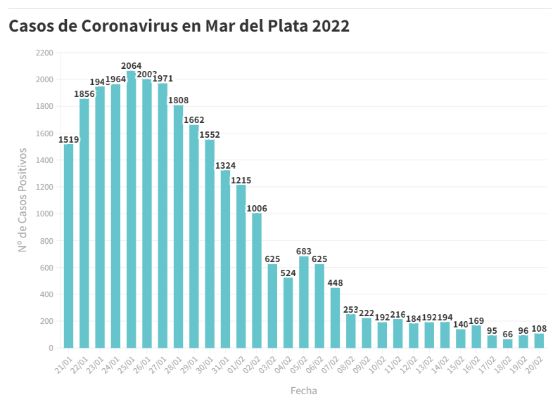 En el último informe del SISA reportado este domingo se confirmaron 108 nuevos pacientes en tratamiento por Covid-19 en General Pueyrredon, con muestras realizadas desde el 13 al 19 de febrero.