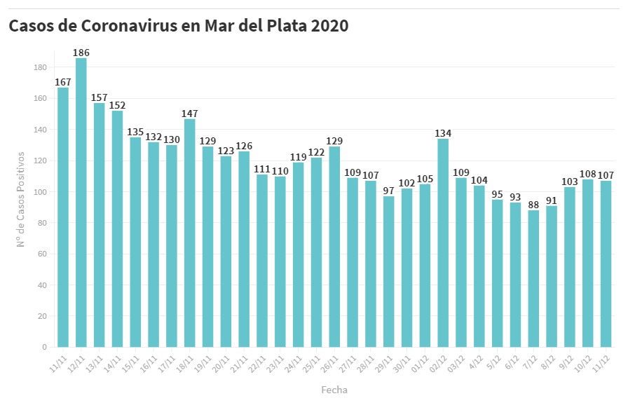 En el último informe del SISA, se confirmaron 107 nuevos pacientes en tratamiento por Covid-19, de los cuales 21 corresponden a casos definidos por criterio clínico epidemiológico y 86 a estudios por PCR realizados desde el 3 al 10 de diciembre.