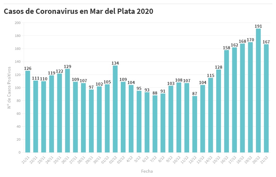 En el último informe del SISA, se confirmaron 167 nuevos pacientes en tratamiento por Covid-19, de los cuales 13 corresponden a casos definidos por criterio clínico epidemiológico y 154 a estudios por PCR realizados desde el 17 al 20 de diciembre.