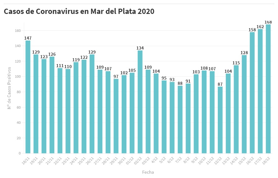 – Casos positivos del día: 168