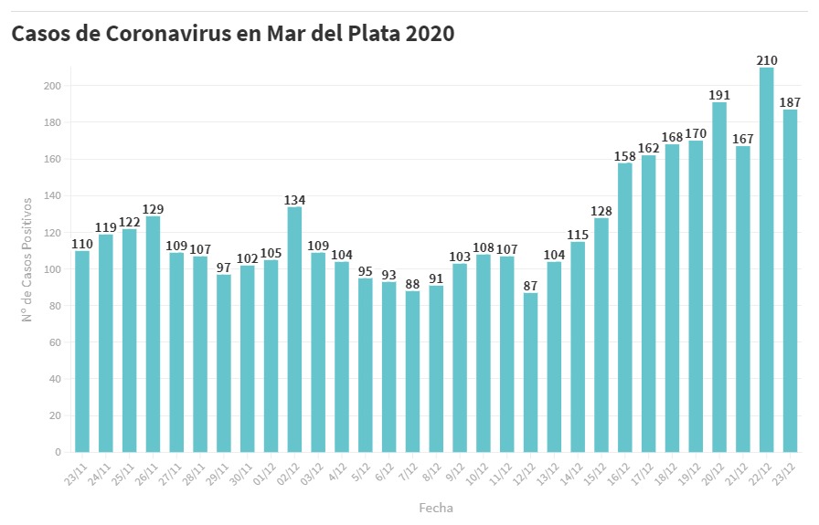 En el último informe del SISA, se confirmaron 187 nuevos pacientes en tratamiento por Covid-19, de los cuales 13 corresponden a casos definidos por criterio clínico epidemiológico y 174 a estudios por PCR realizados desde el 19 al 22 de diciembre.