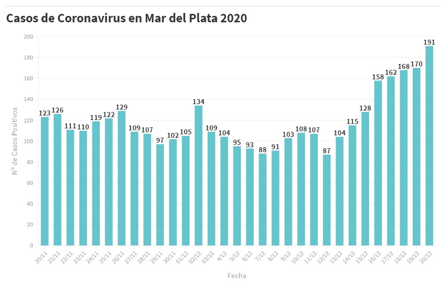 En el último informe del SISA, se confirmaron 191 nuevos pacientes en tratamiento por Covid-19, de los cuales 17 corresponden a casos definidos por criterio clínico epidemiológico y 174 a estudios por PCR realizados desde el 13 al 19 de diciembre.
