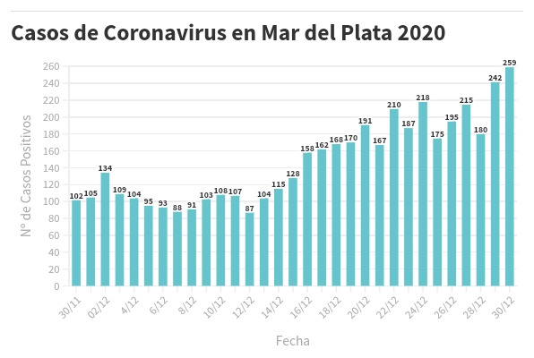 En el último informe del SISA, se confirmaron 259 nuevos pacientes en tratamiento por Covid-19, de los cuales 55 corresponden a casos definidos por criterio clínico epidemiológico y 204 a estudios por PCR realizados desde el 21 al 29 de diciembre.