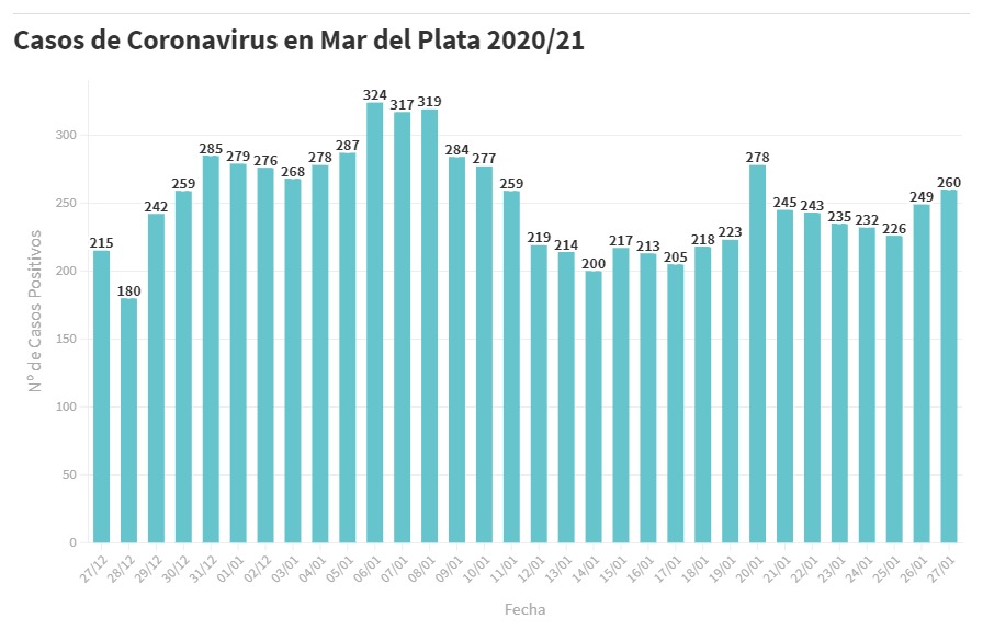 En el último informe del SISA, se confirmaron 260 nuevos pacientes en tratamiento por Covid-19, de los cuales 48 corresponden a casos definidos por criterio clínico epidemiológico y 212 a estudios laboratoriales realizados desde el 11 al 26 de enero.