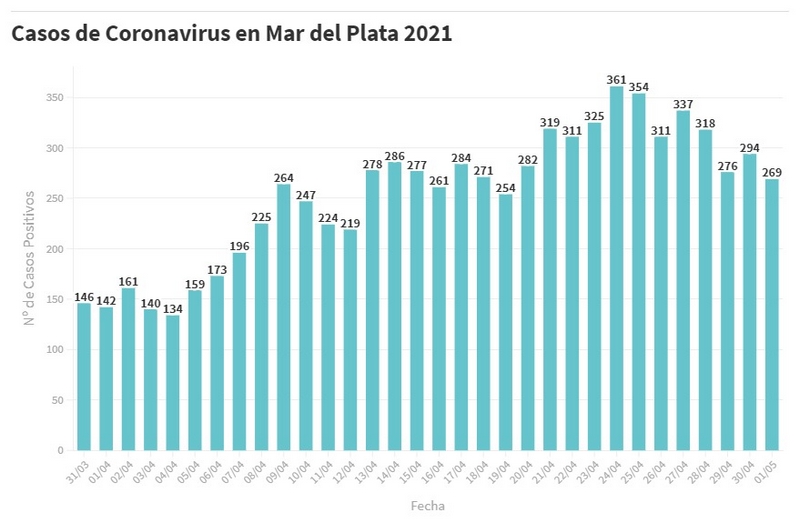 Un total de 296 personas contagiadas de Covid-19 fueron registradas durante las últimas 24 horas en Mar del Plata, y además el sistema sumó 14 fallecidos. De esta manera, son 3.376 los pacientes que permanecen en tratamiento por coronavirus.