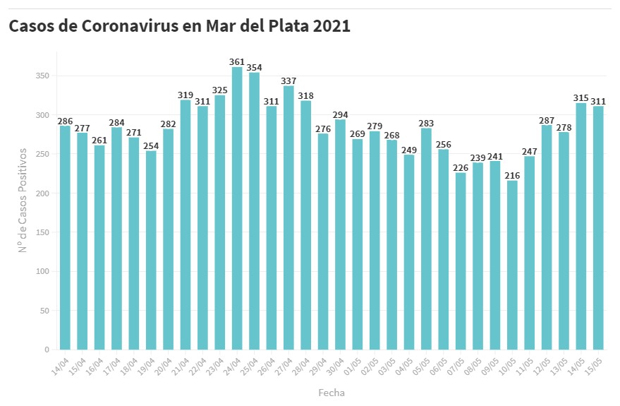 En el último informe del SISA, se confirmaron 311 nuevos pacientes en tratamiento por Covid-19, de los cuales 37 corresponden a casos definidos por criterio clínico epidemiológico y 274 a estudios laboratoriales realizados desde el 3 al 14 de mayo.