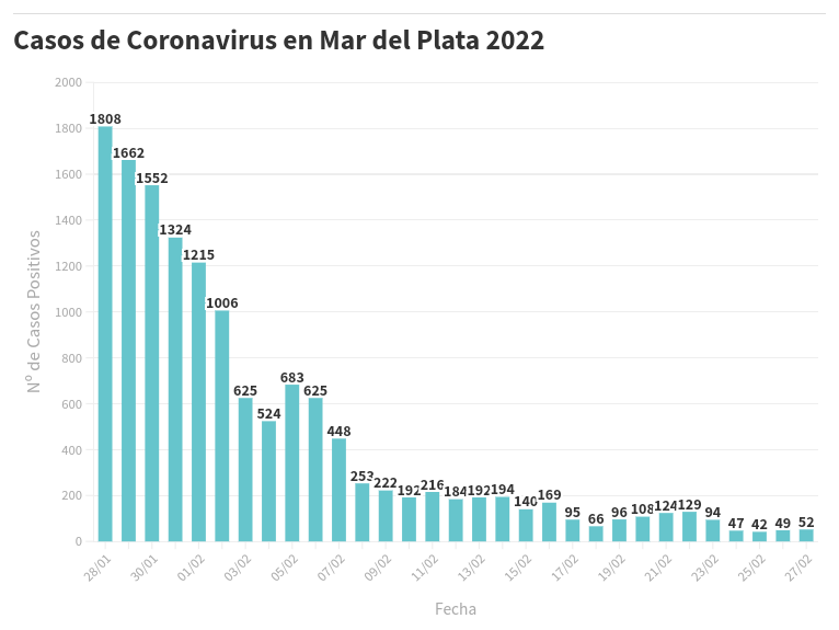 En el último informe del SISA reportado hoy se confirmaron 52 nuevos pacientes en tratamiento por Covid-19 en General Pueyrredon, con muestras realizadas desde el 23 al 26 de febrero.
