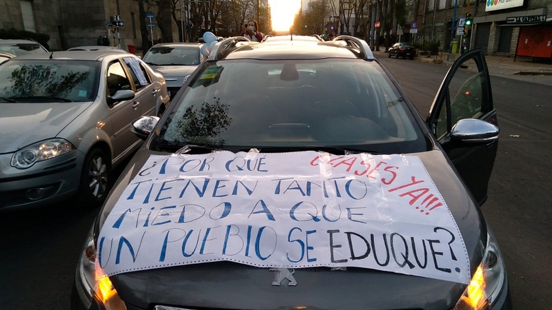 Los manifestantes, una larguísima fila de vehículos que iba por Luro desde Independencia hasta la costa, hicieron sentir además su reclamo con pancartas que llevaban frases como “¡Abran las escuelas ya!”, “¿Por qué tienen tanto miedo a que un pueblo se eduque?” o “Quiero ir al colegio” se mezclaron con banderas celestes y blancas.