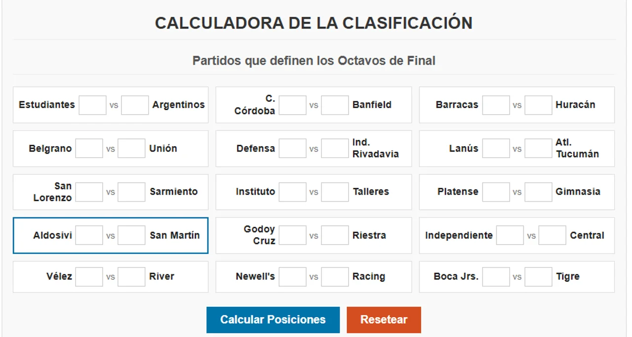 A una fecha del final de la fase de grupos, la Liga Profesional de Fútbol arde y las especulaciones están a la orden del día. Por eso, NoticiasArgentinas.com estrena su Calculadora de Resultados, una herramienta interactiva al estilo «Promiedos» para que los hinchas puedan simular todos los resultados de la Fecha 16 y conocer al instante quiénes son los equipos que pasan a octavos de final.