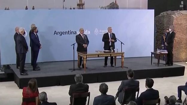 Fue entonces que Alberto Fernández manifestó sobre los ministros ”A muchos los conozco. Busqué entre aquellos que trabajaron conmigo en el gobierno de Néstor Kirchner”. Al referirse a cada uno mencionó sus cargos anteriores y sobre Aníbal Fernández señaló “Fue ministro de varias cosas”. La expresión generó gracia entre los presentes, sobre todo en Luis Manzur, que asumió como jefe de Gabinete.