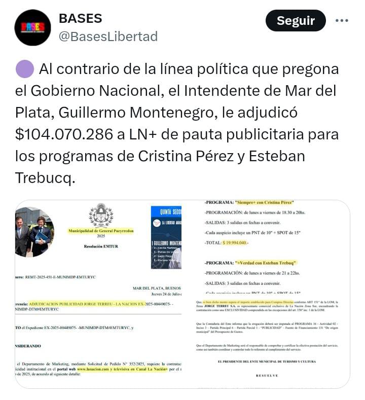El gasto en publicidad es un pilar excluyente para el intendente marplatense. Es propaganda encubierta en realidad. Así utilizó los recursos de la Secretaría de Medios Públicos de la Provincia de Buenos Aires desde 2018. Es una orgía a de millones invertidos en el ensobramiento que eleva su discurso de identificación ante LLA. Es un estímulo para estacionarse en la zona de confort del oficialismo nacional.