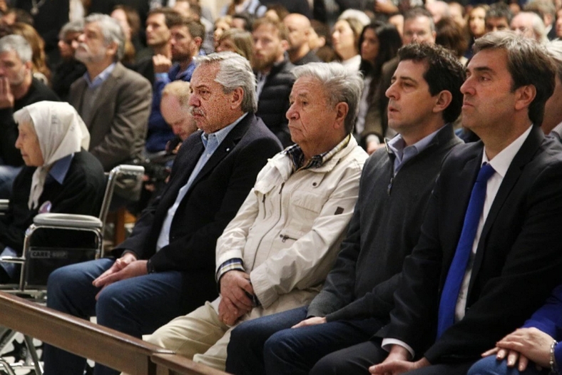 El jefe de Estado se encontraba sentado en primera fila del importante templo católico, con el ex mandatario Eduardo Duhalde sentado a su izquierda y la referente de Madres de Plaza de Mayo Vera Jarach.