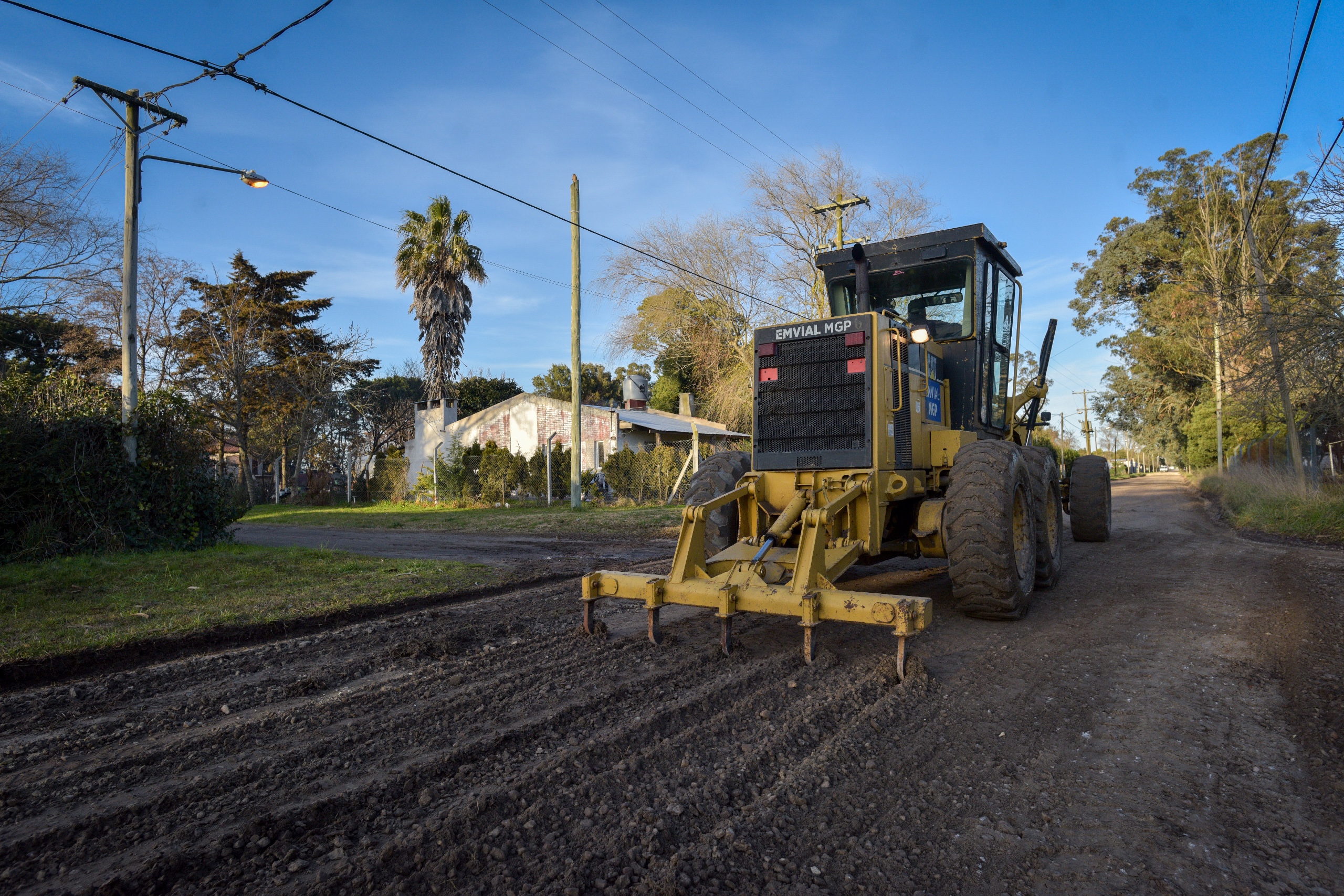 Los equipos viales mantuvieron frentes de trabajo en los barrios La Laura, Estación Camet, Castagnino, 2 de Abril y La Trinidad: allí realizaron tareas de conformación de calles, fresado y engranzado.