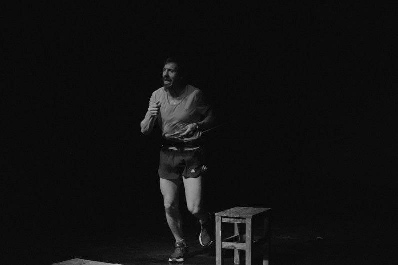 En “Runner” un hombre que corre, que entrena. Corre porque ama correr y mientras entrena recuerda su vida. Un actor que también es deportista, y en esta oportunidad no actúa. Un hombre que solo quiere expresar aquello que transita como hombre común. Una no-obra de teatro. Un entrenamiento físico. Interno y externo.