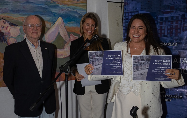 Luego de las palabras de apertura de Magalí Marazzo, de la Asociación Argentina de Gestores Culturales y César Ventimiglia de Mirada Ciudadana, todo comenzó en tono ameno y descontracturado con la distinción a los hermanos Sebastián y Eugenio Weinbaum, creadores de MDQ por el mundo, quienes agradecieron la nominación e hicieron una fuerte defensa de las playas y la revalorización de su condición de públicas y del frente costero con cada vez más sombra y viento por los nuevos desarrollos inmobiliarios. Luego fue el turno de la cantante y conductora Ari Degoas quien recibió el reconocimiento por su presente y a la memoria de su padre, el inolvidable Norbert. Hizo hincapié de valorar también otra dimensión de patrimonio como es el humano, y con su habitual histrionismo y simpatía entonó parte de la canción Avenida de los tilos, cuando se recordó y reconoció la figura de María Wernicke.