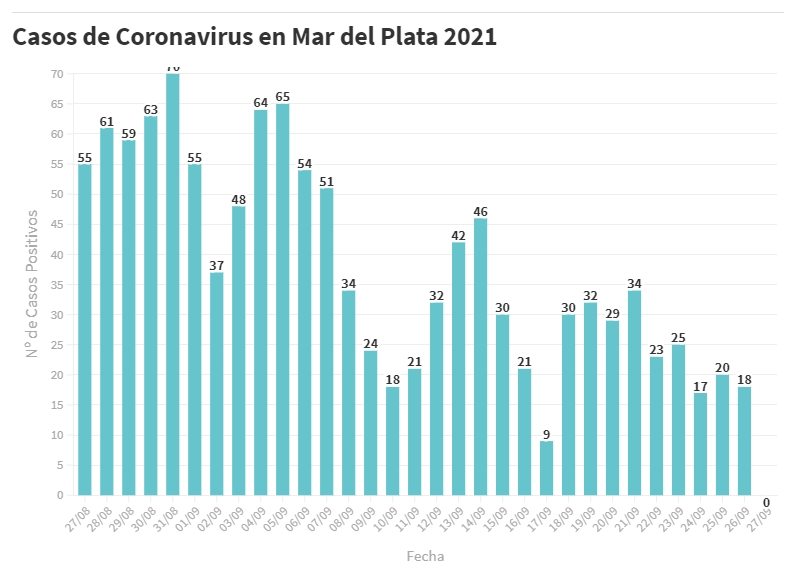 En el último informe del SISA reportado hoy no se registraron nuevas personas en tratamiento por Covid-19, con muestras procesadas del 24 al 26 de septiembre.