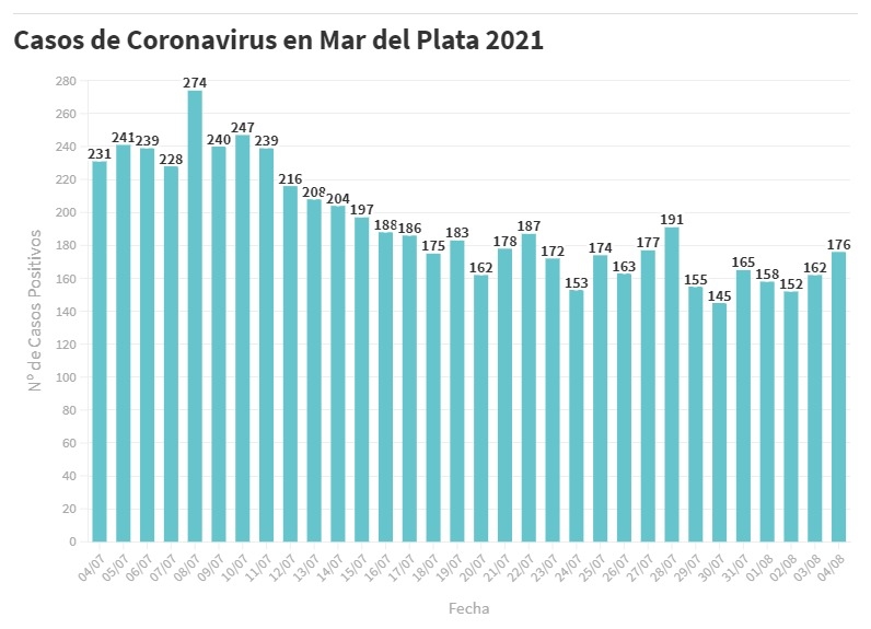 Mar del Plata sumó hoy 176 nuevos contagios y 10 muertos