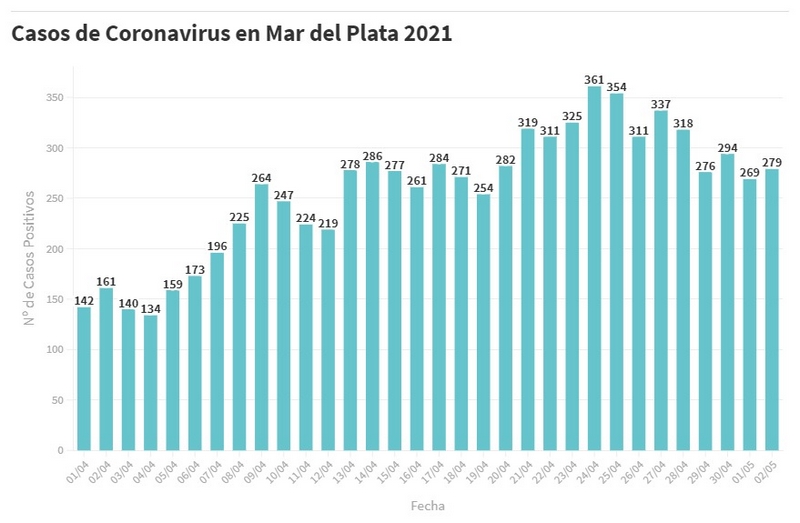 Mar del Plata sumó hoy 279 nuevos contagios por Covid-19