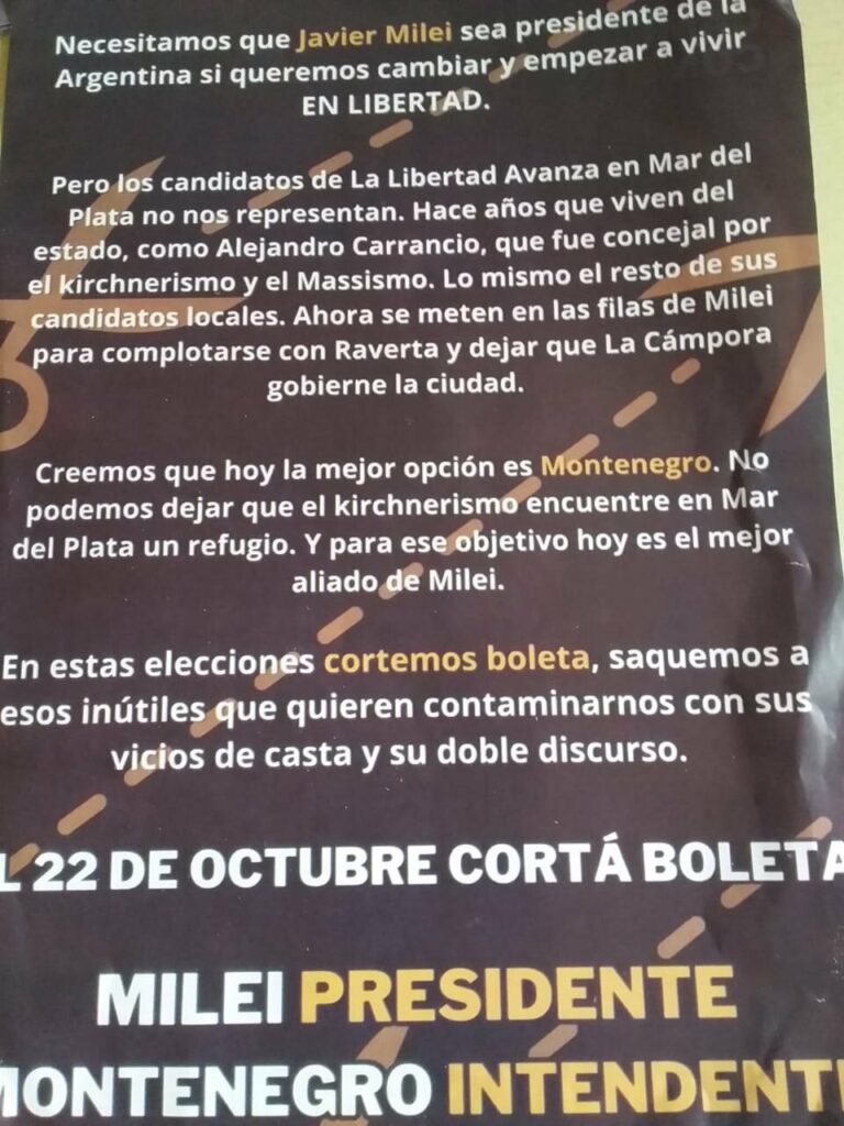 Y abunda en el  epílogo con los siguientes conceptos: “No está claro todavía si hay fórmula de convivencia. Lo que sí parece evidente es que la necesitarán para evitar cortocircuitos. El caso Montenegro es un ejemplo: si el alcalde se suma a LLA lo hará de la mano de Caputo, pero Karina-Pareja tienen otra referencia en Mar del Plata, el diputado Alejandro Carrancio. ¿A quién priorizar?”