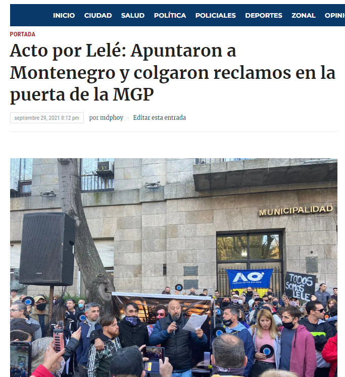 No ocurrió lo mismo cuando asesinaron al DJ Leandro “Lelé” Gatti en Playa Grande y la protesta se hizo frente a la municipalidad el 29 de setiembre de 2021, hace sólo 8 meses. En ese momento tanto Montenegro como su compinche en el Ministerio de Seguridad, Sergio Berni (que llegó a la ciudad por el hecho), no dieron señales de vida. (ver link aparte con la carta que nunca contestó)