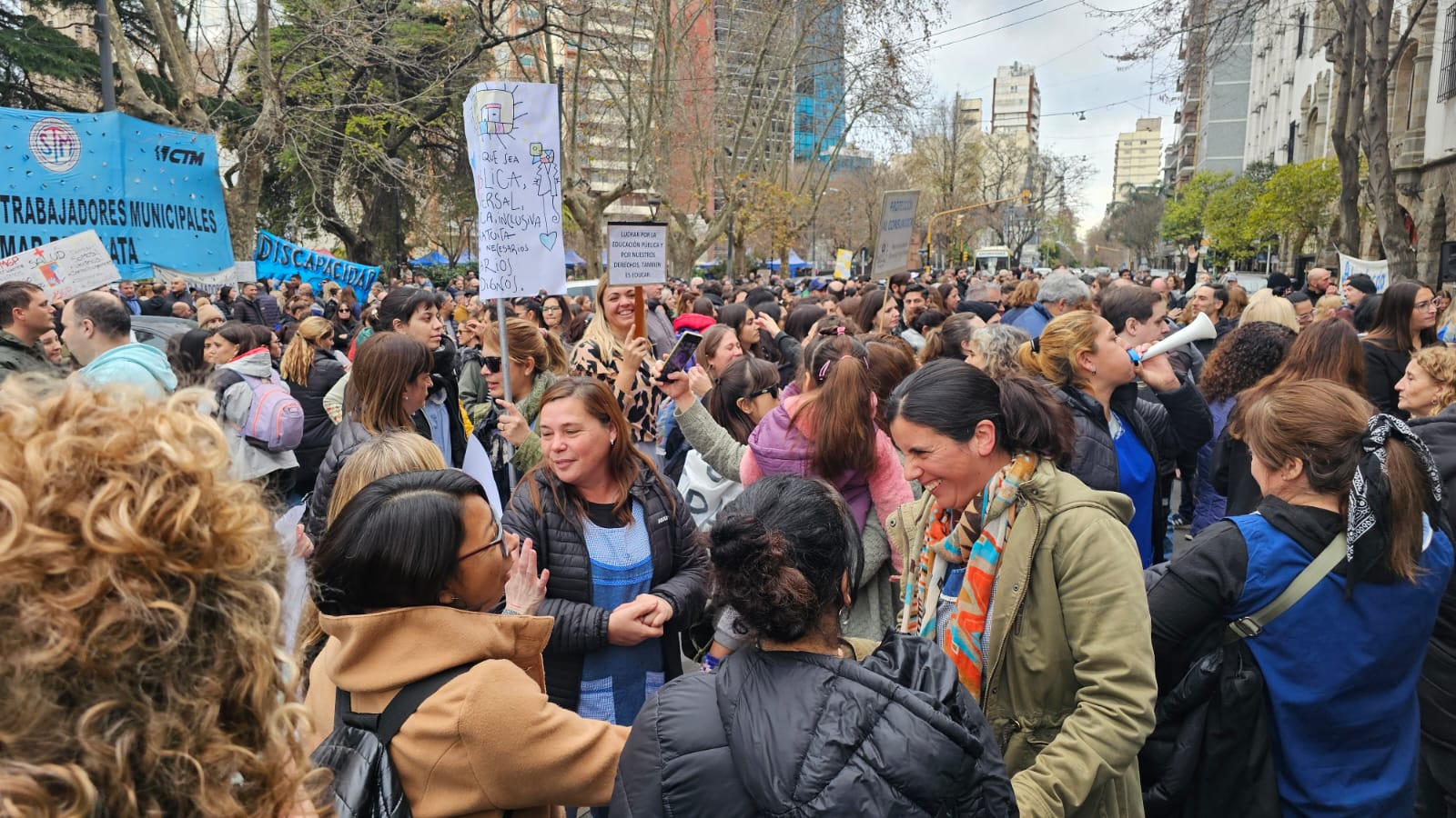 Desde las 10 de la mañana , trabajadores municipales se concentraron en la puerta del Palacio Municipal en el marco de las acciones que llevan a cabo en protesta del reclamo salarial.