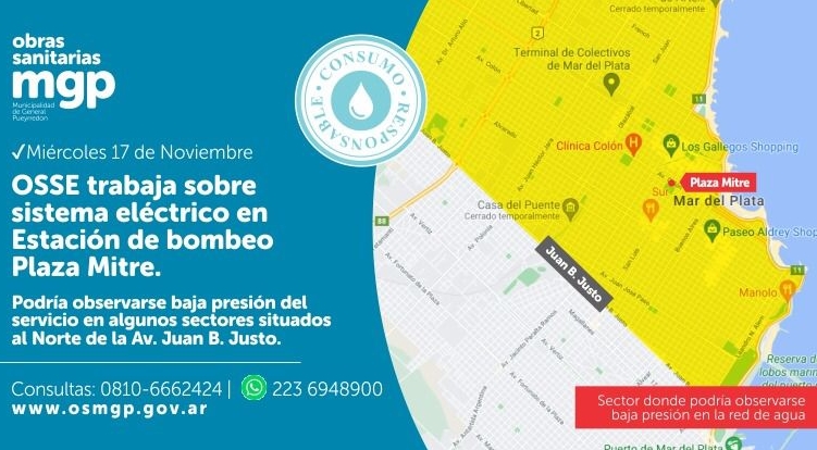 Debido a que se trabajará dentro de las celdas de media tensión, por seguridad es necesario sacar la estación de servicio mientras se avanza con las tareas. Se recuerda desde OSSE la importancia de contar con tanque de reserva de agua a todos los vecinos ubicados al norte de avenida Juan. B. Justo.