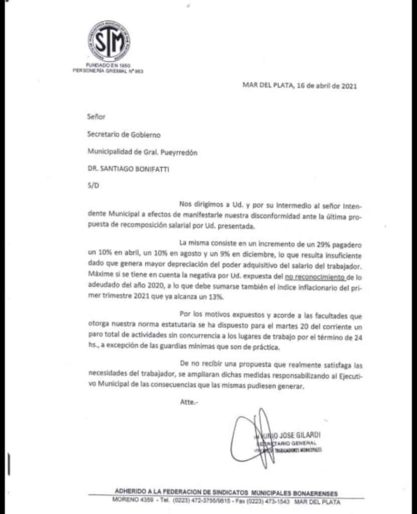 Primera medida de fuerza al gobierno de Guillermo Montenegro.