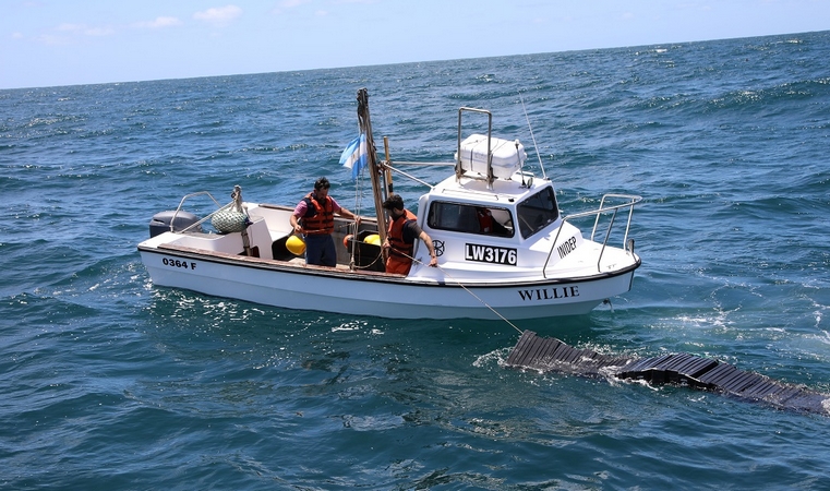 En este caso, la experiencia se realizó el viernes pasado a bordo de un guardacostas de la Prefectura, con participación de oficiales de la Dirección de Protección Ambiental de la institución. Investigadores y técnicos del INIDEP y la CONAE depositaron en el mar distintos objetos de plástico (cajones de pescado) con posición precisa y a una distancia entre ellos, y luego del horario estimado del pasaje del satélite, se retiraron del mar y fueron trasladados a tierra.