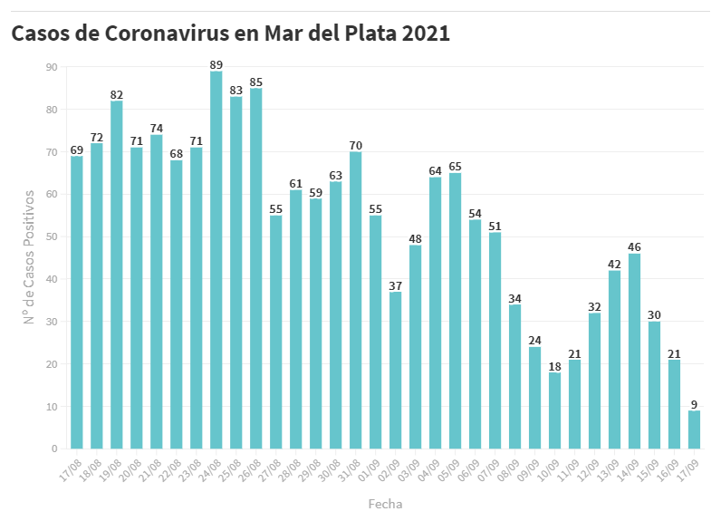 En el último informe del SISA reportado este viernes apenas se confirmaron 9 nuevos pacientes en tratamiento por Covid-19 en General Pueyrredon, que corresponden a casos definidos por estudios laboratoriales realizados desde el 14 al 16 de septiembre.