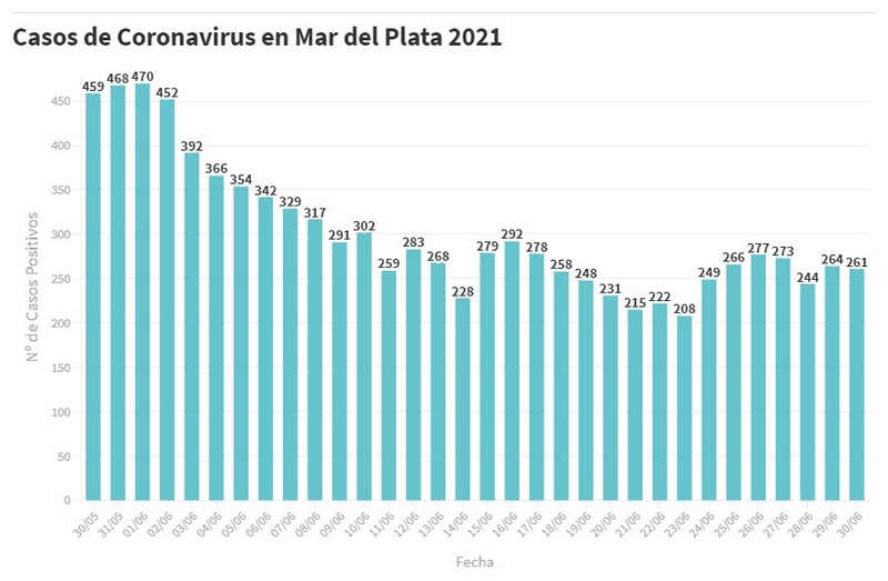 En el último informe del SISA presentado hoy, se confirmaron 261 nuevos pacientes en tratamiento por Covid-19, de los cuales 15 corresponden a casos definidos por criterio clínico epidemiológico y 246 a estudios laboratoriales realizados desde el 15 al 29 de junio.